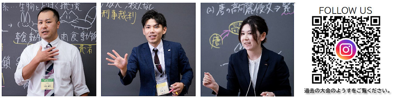 この大会は、競技には参加せず、勉強の場として模擬授業を見学していただくこともできます。特に若い講師のみなさんには、全国の一流教師の授業を見る絶好の機会ですので、ご自分の授業スキルを上げるためにも、ぜひ、ご参加ください。