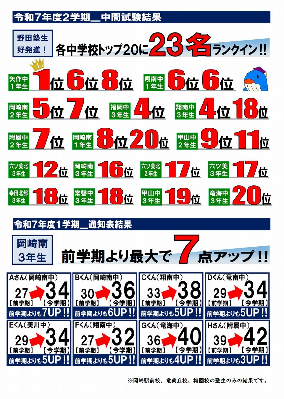 集団個別指導専門館MIRAI 梅園校 塾生成績発表!