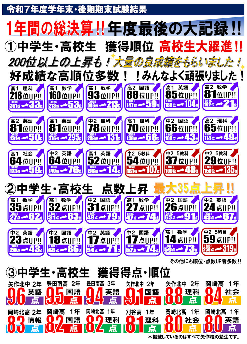 | 高1~高3 | 高校部 | 午後5:25~10:00 | ‐ | ‐ | ● | ● | ● | ● | ● |