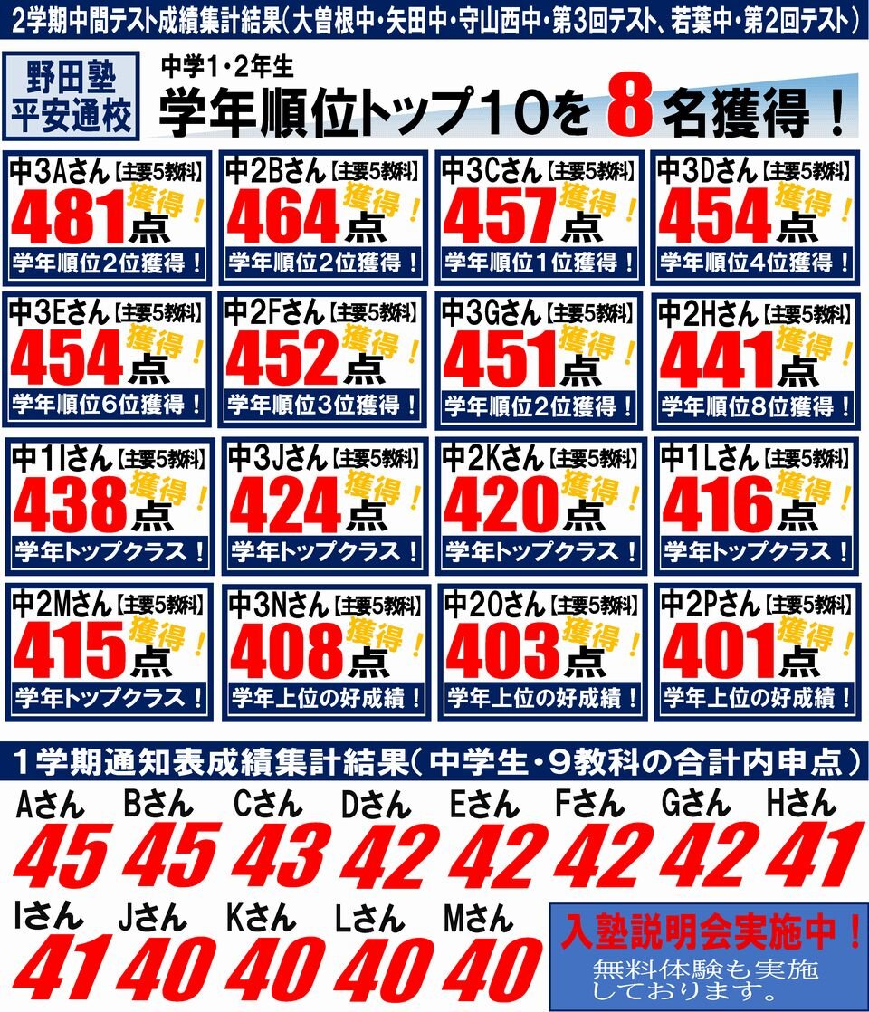 集団個別指導専門館MIRAI 平安通校 塾生成績発表!
