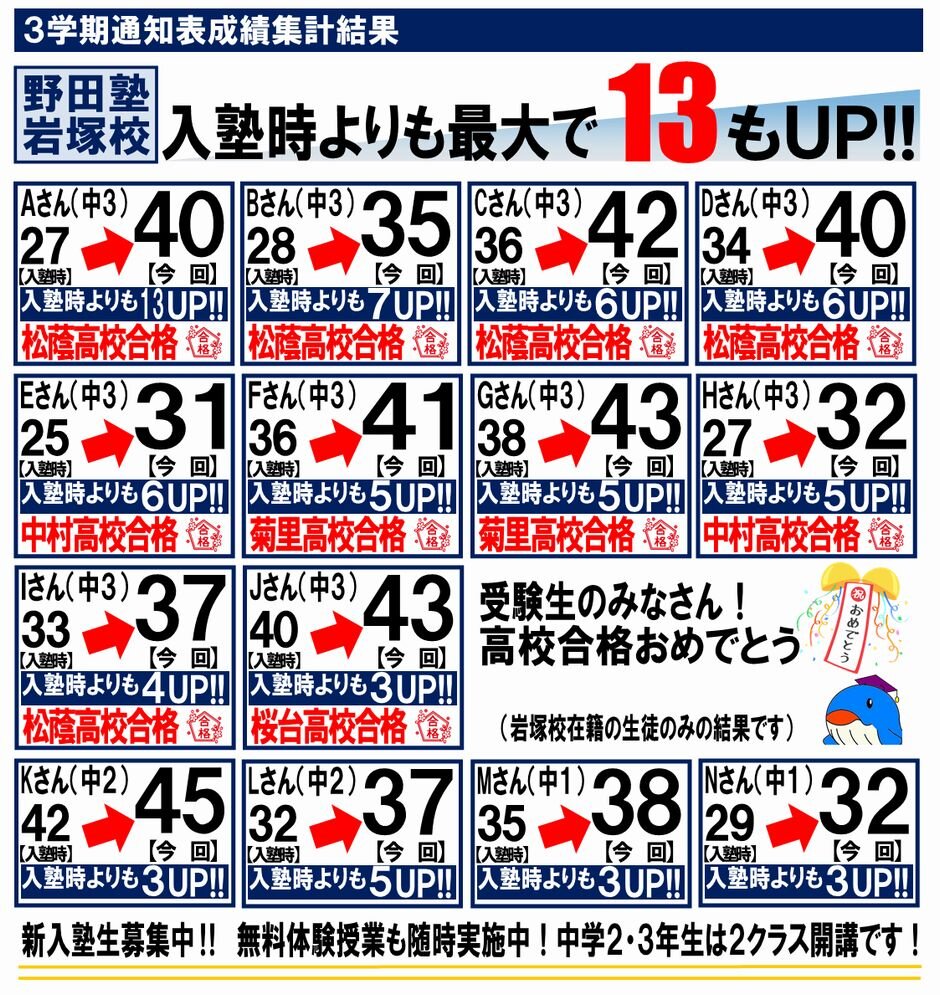 岩塚校 塾生成績発表!