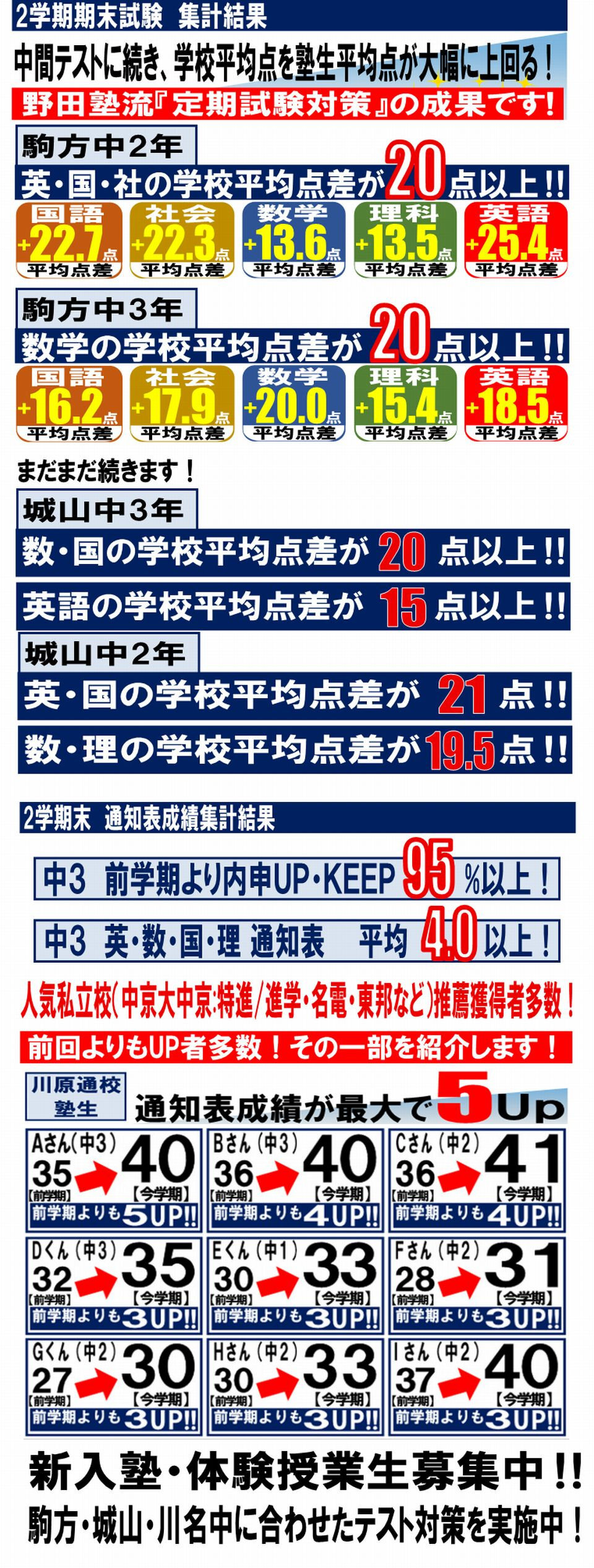 | 中2 | 本科 | 午後7:20~10:00 | ‐ | ‐ | ● | ▲ | ‐ | ‐ | ● |