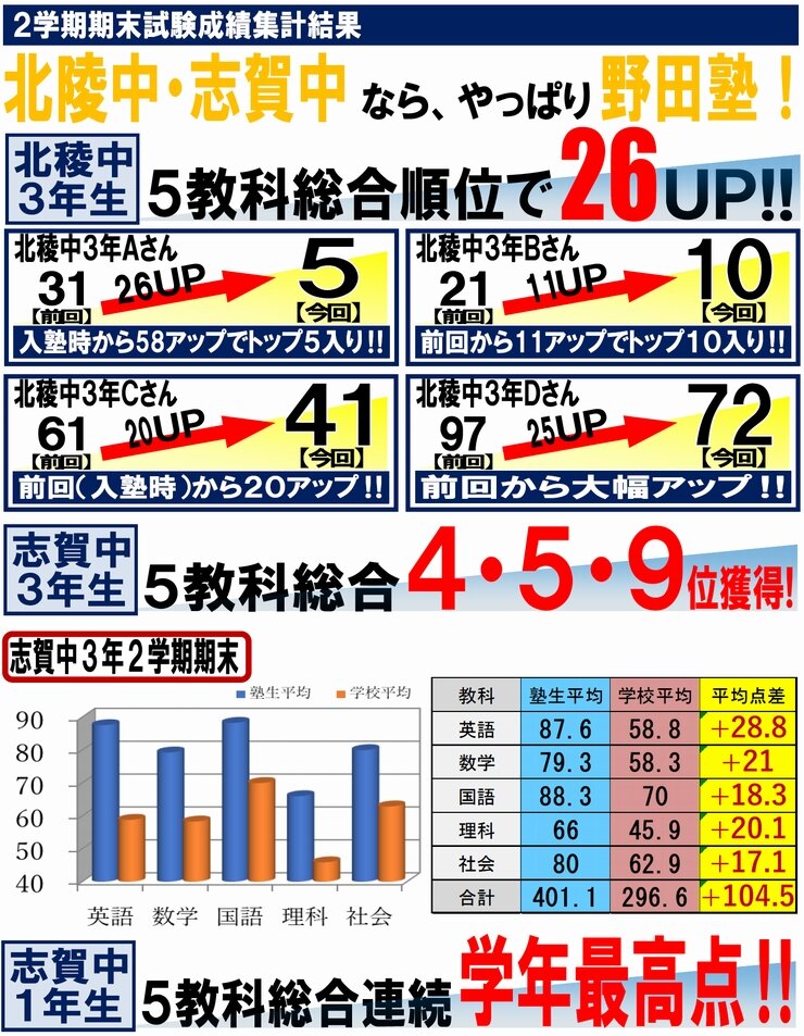 集団個別指導専門館MIRAI|黒川校 塾生成績発表!