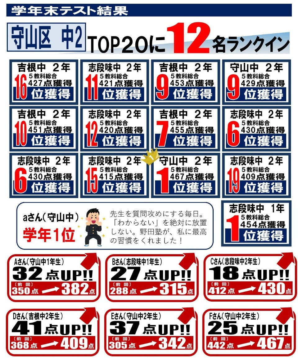 | 中2 | 本科 | 午後7:20~10:00 | ‐ | ‐ | ‐ | ‐ | ● | ▲ | ● |