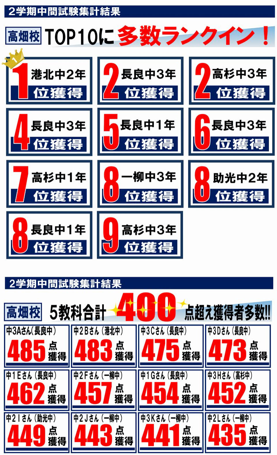 | 中2 | 本科 | 午後7:20~10:00 | ‐ | ‐ | ● | ‐ | ‐ | ▲ | ● |
