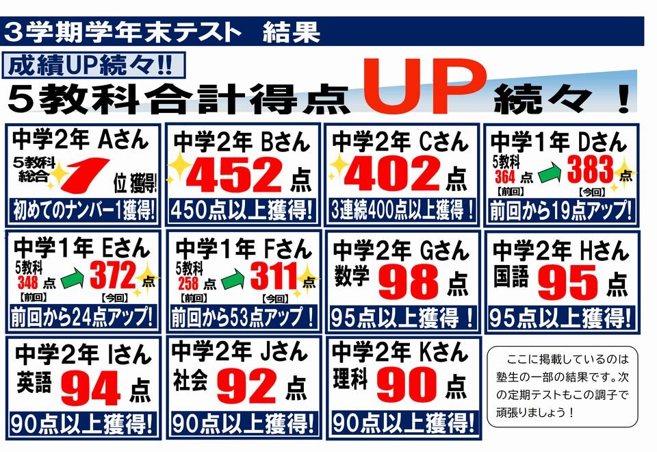 集団個別指導専門館MIRAI|滝ノ水校 塾生成績発表!