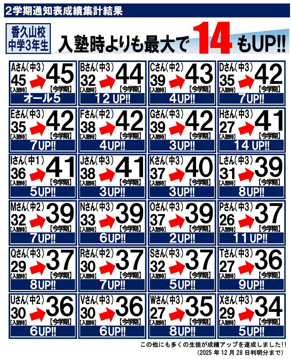 香久山校 塾生成績発表!