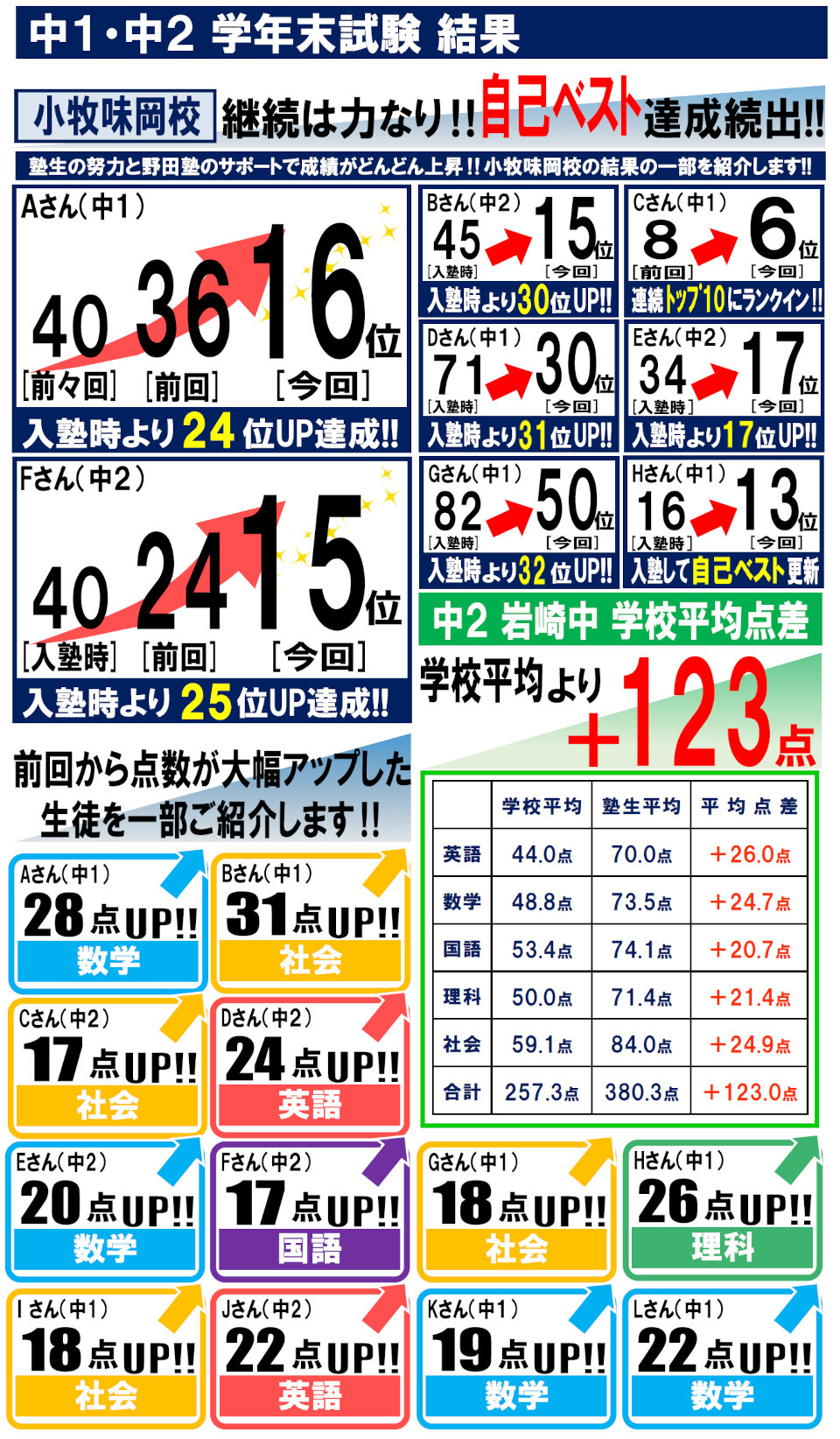 小牧味岡校 塾生成績発表!