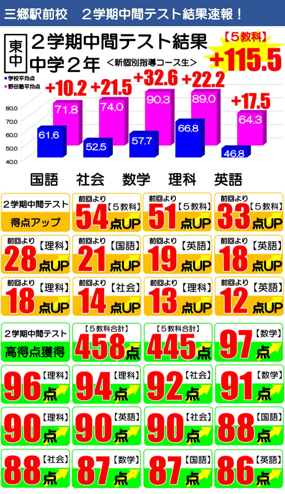 個別指導専門館 三郷駅前校 塾生成績発表!