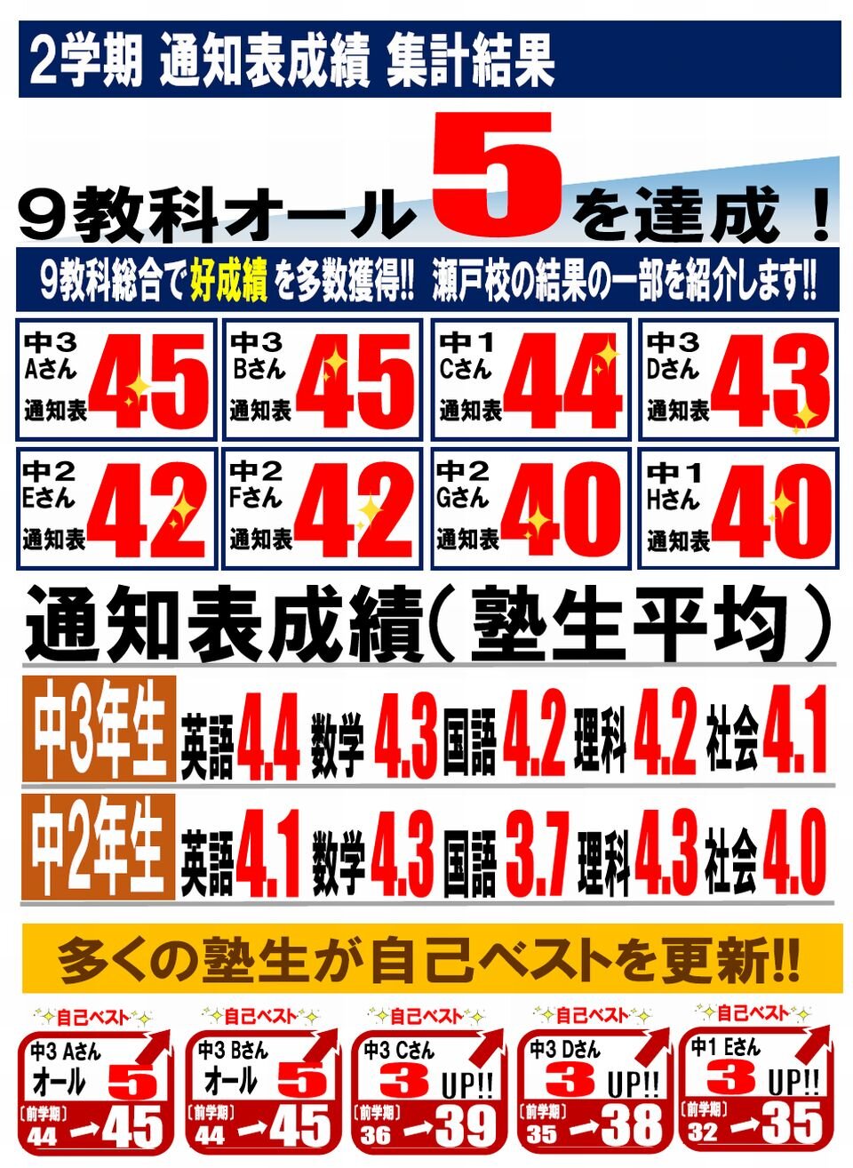 集団個別指導専門館MIRAI|瀬戸校 塾生成績発表!