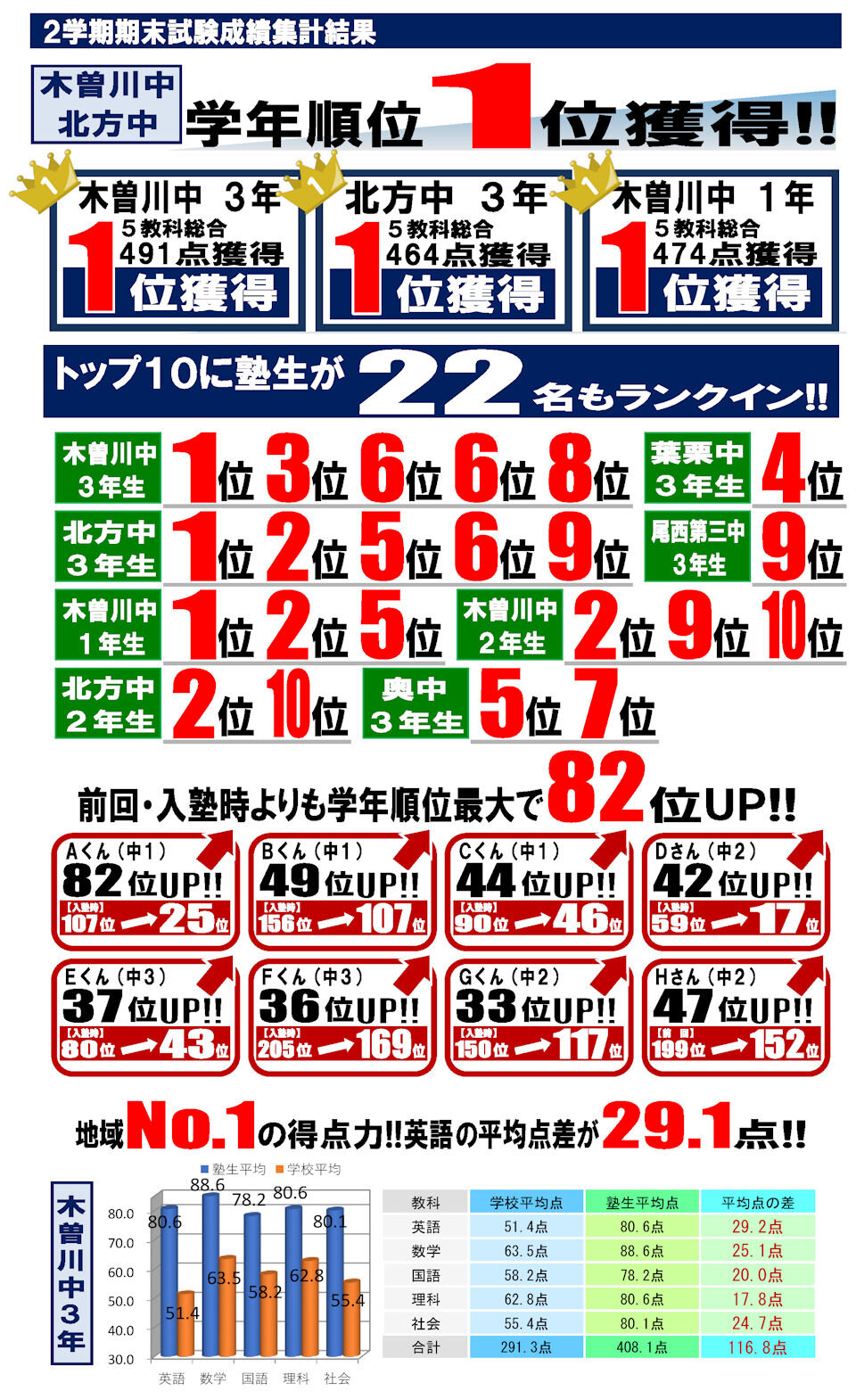 | 中2 | 特別選抜 | 午後7:20~10:00 | ‐ | ‐ | ‐ | ▲ | ● | ‐ | ● |