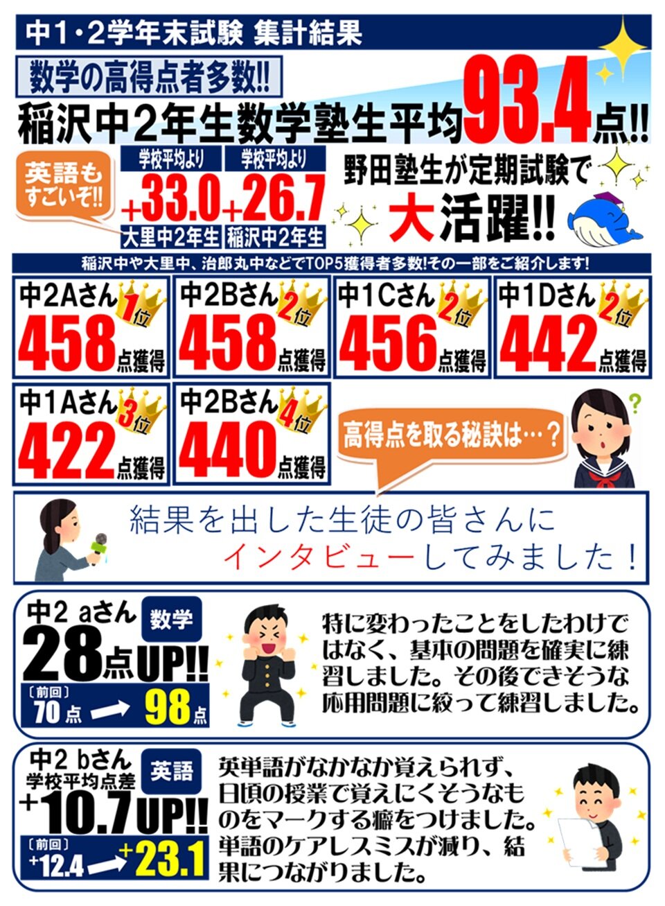 野田塾の授業のわかりやすさ、学びの環境を実際に体験して、本塾の良さを知ってください。