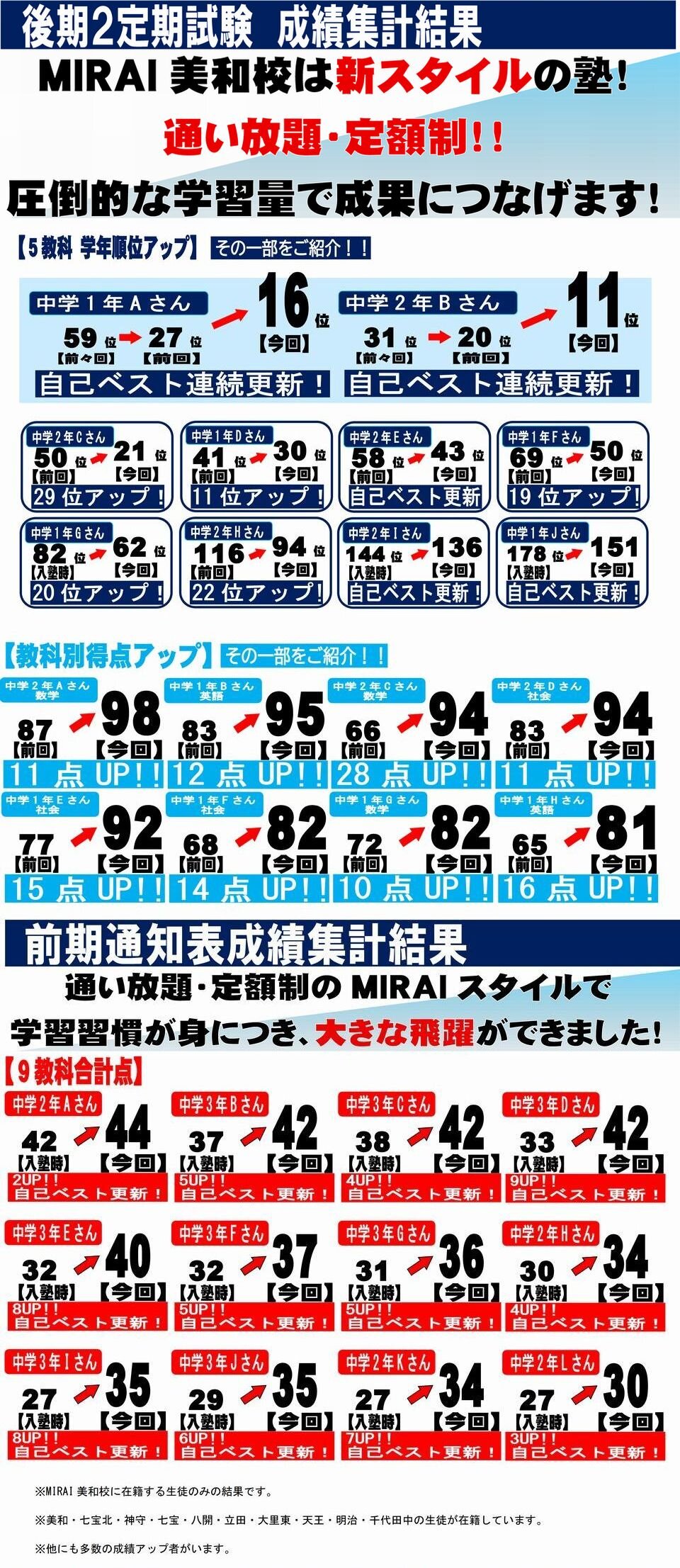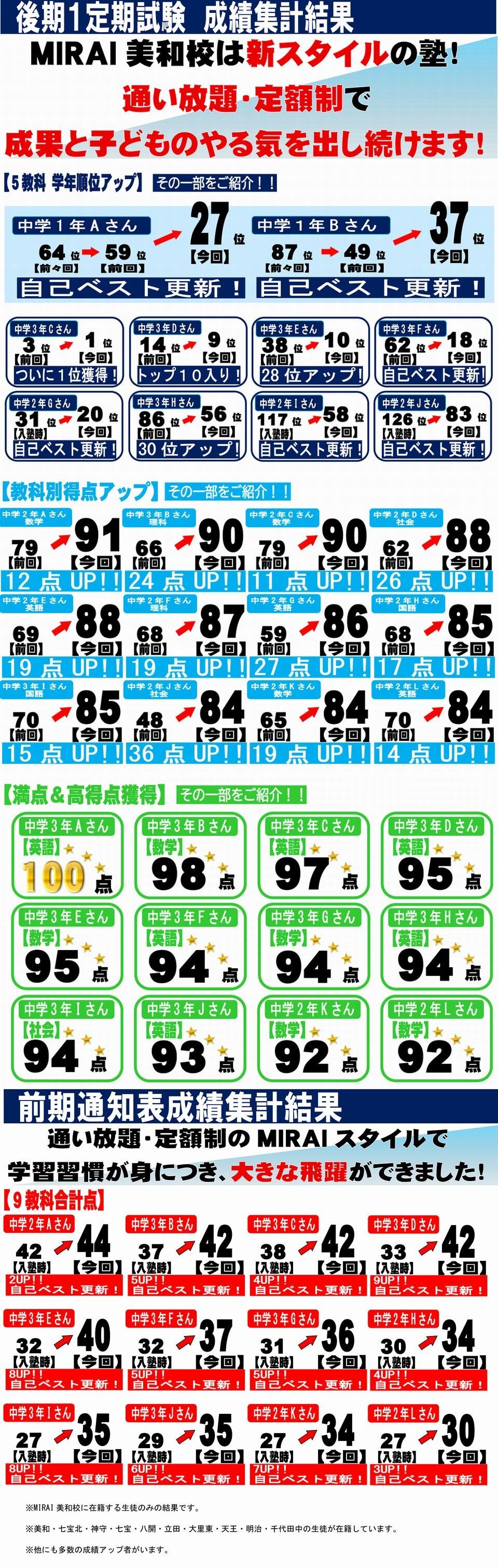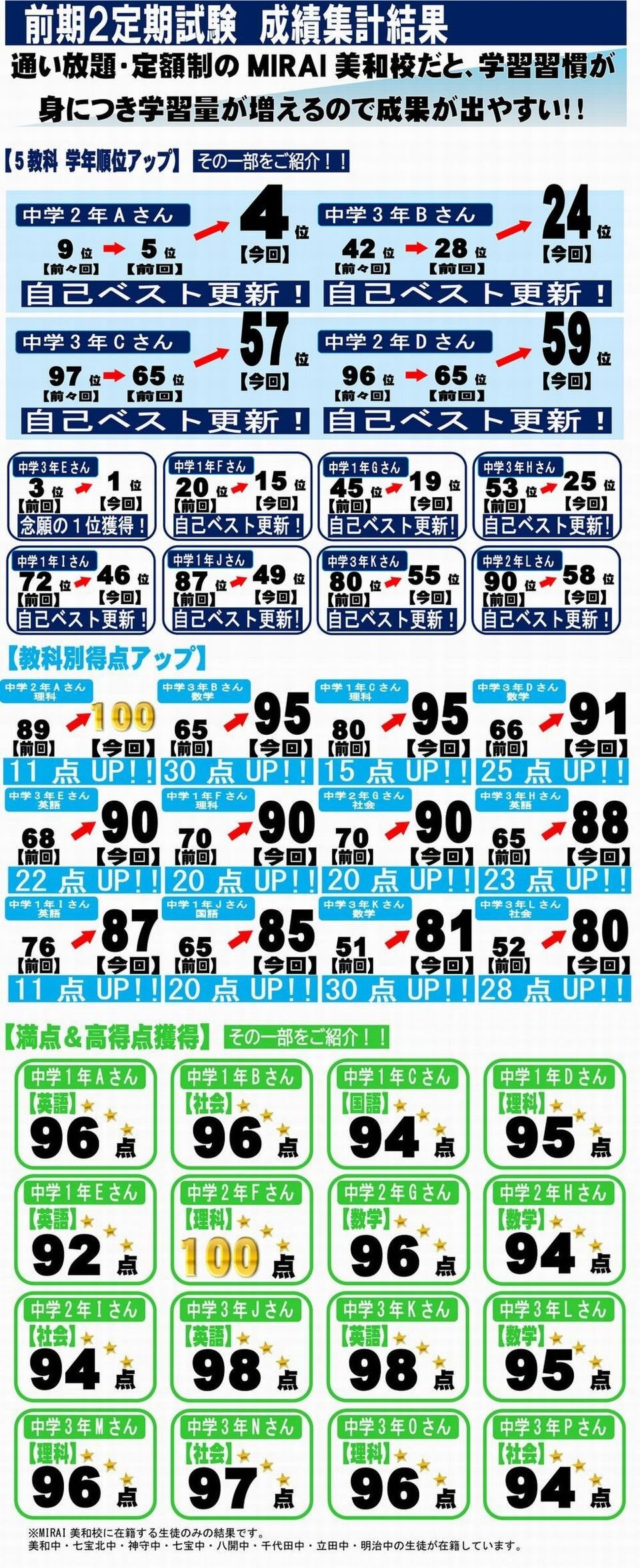 集団個別指導専門館MIRAI 美和校 塾生成績発表!