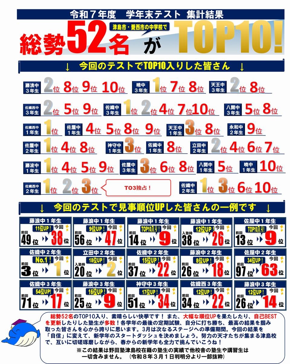 津島校 塾生成績発表!