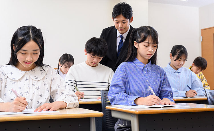 通常授業では、nPadを使ったわかりやすい授業、定期試験対策アプリを使った完璧な定期試験対策で内申点アップと基礎力アップを行っています。さらに、特別講習では、入試で出題される難問にも対応できる得点力を養います。内申点と得点力をWアップすることで、第一志望合格を可能にしているのです。